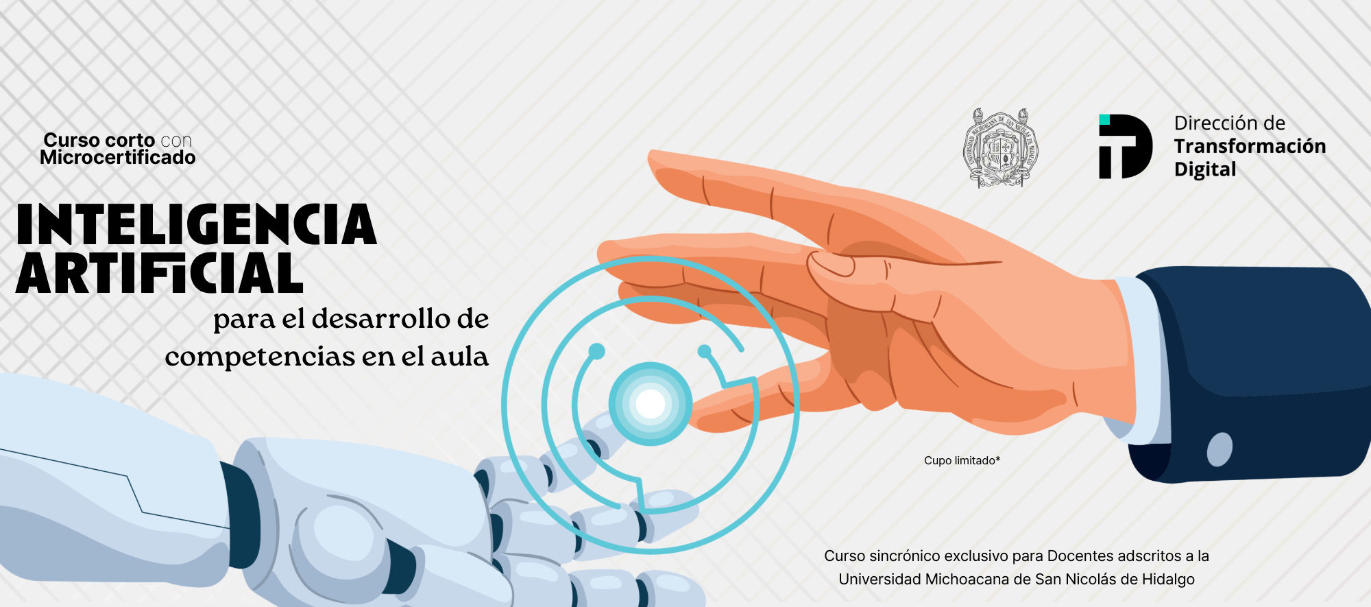 En la actualidad, la IA se integra discretamente en nuestras rutinas, optimizando procesos y mejorando nuestra calidad de vida. La Dirección de Transformación Digital (DTD) de la Universidad Michoacana de San Nicolás de Hidalgo (UMSNH) presenta este curso con el objetivo de acercar esta tecnología revolucionaria a nuestra comunidad universitaria, proporcionando las herramientas necesarias para aprovechar su potencial en el contexto cotidiano en el aula.