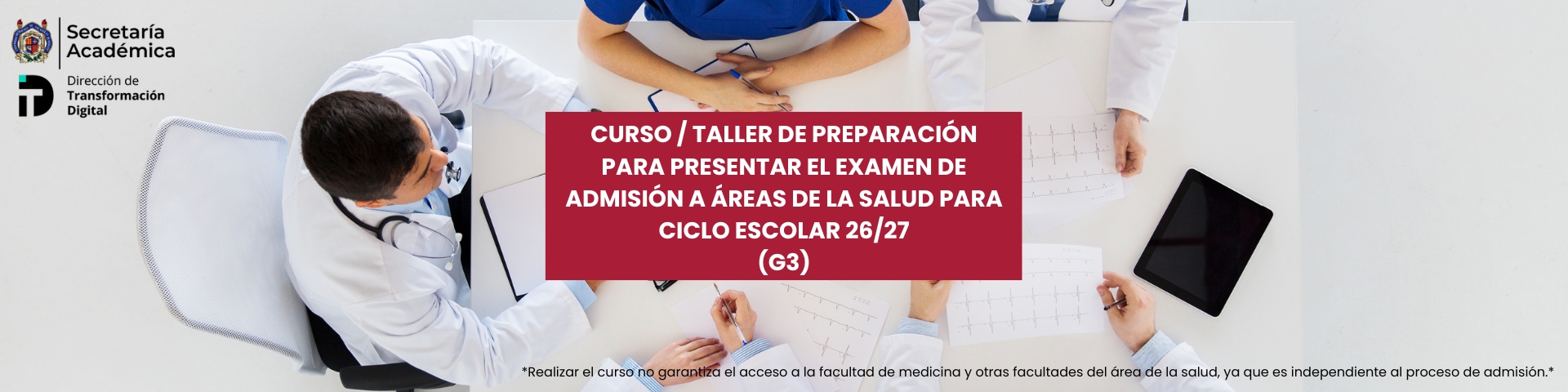 GV3 Curso / Taller En línea de Preparación para Presentar el Examen de Admisión a Áreas de la Salud para el Ciclo Escolar 26/27
